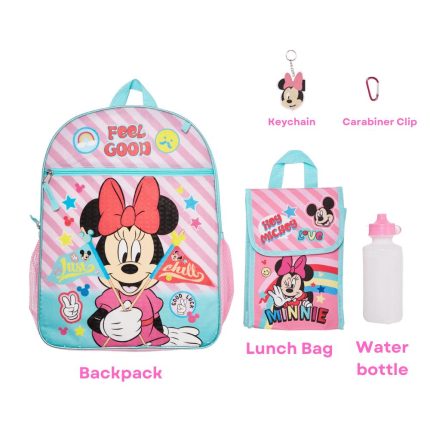 About this item Product details 5-PIECE ?FEEL GOOD, JUST CHILL? MINNIE MOUSE SCHOOL BACKPACK With this 5-piece backpack set, your