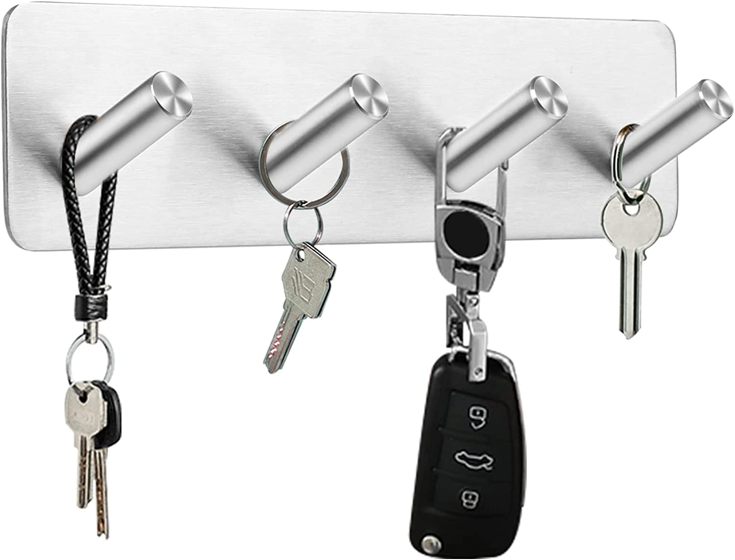 Key Holder for Wall, Self Adhesive Key Hook for Wall, Stainless Steel Wall Mounted Key Holder for Kitchen,Bathroom, Hallway–Silver