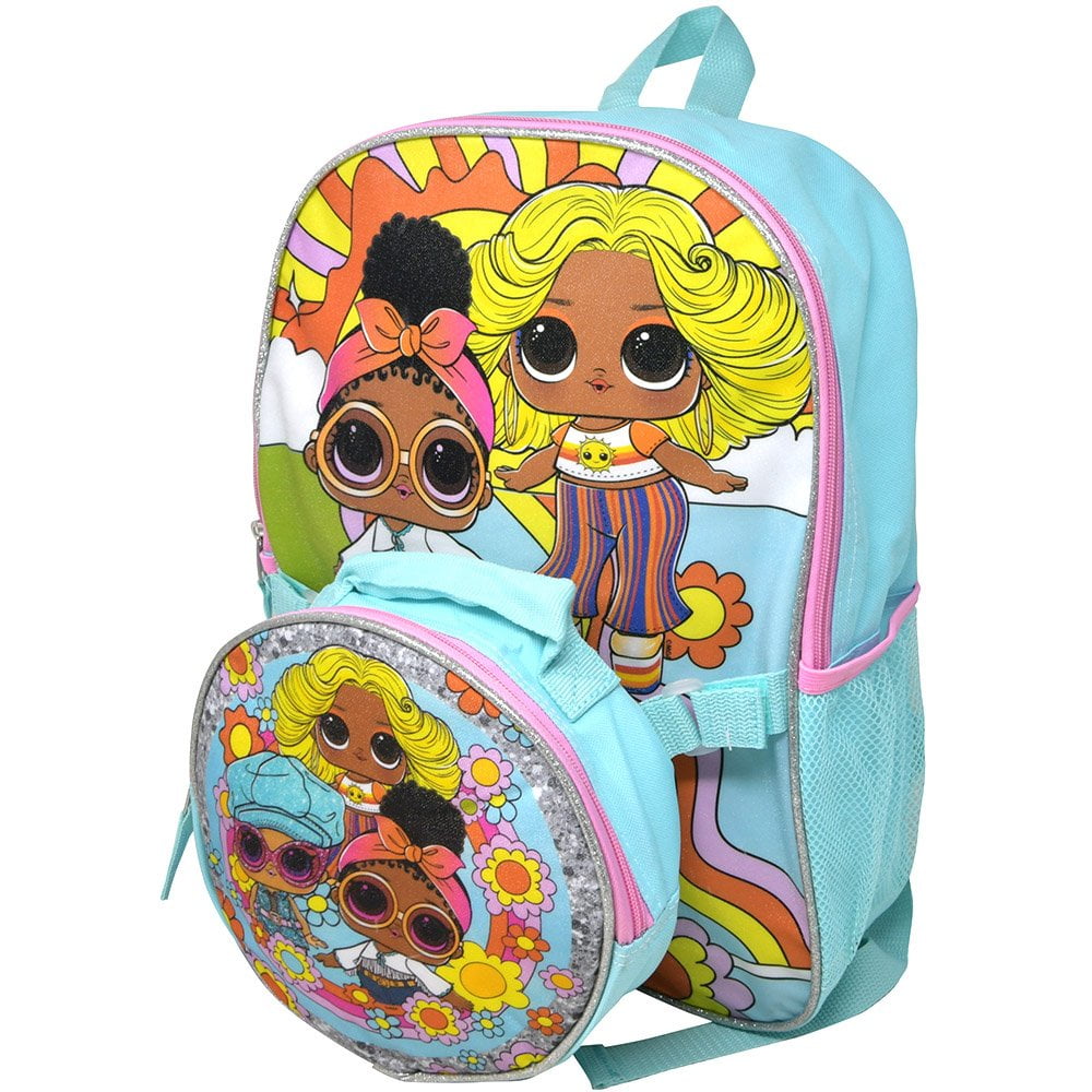Home Backpack LOL Dolls Girls Backpack with Lunch Bag 16″ Blue