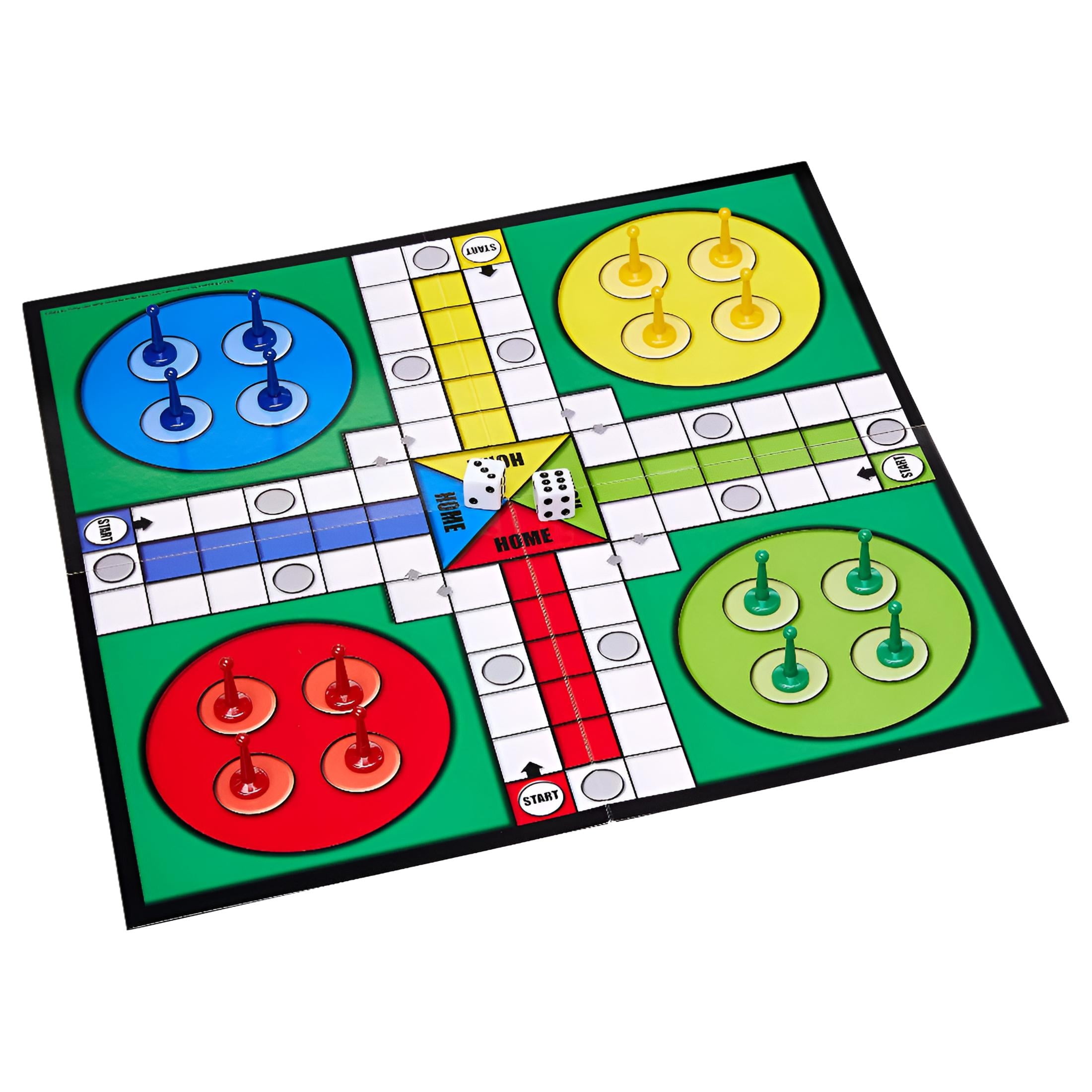 • Children’s board game includes game board, 16 pawns (4 of each color) and 2 dice